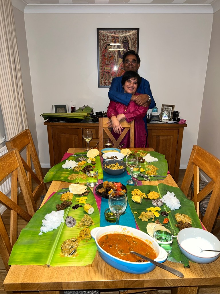 I was born in Kerala and spent my early childhood there. Some close relatives were staying with us in Southampton during this Onam season. It was perhaps bravura induced by a glass or two of celebratory Rosé. I promised our guests that I would prepare the Onasadhya or Onam feast. They were excited by the prospect of a 27 item feast – yes you read that right – 27, all freshly cooked vegetarian dishes, served on banana leaves.