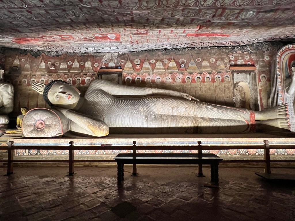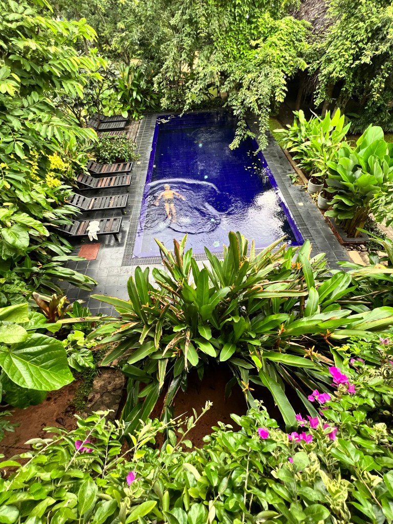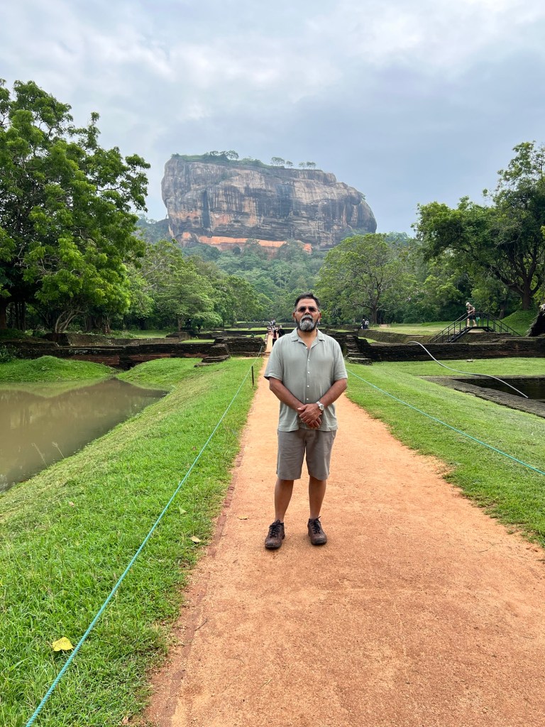 We treated ourselves to a swim and a bit of lie-in on the poolside loungers. After a breakfast of coconut roti with sambal, eggs and fresh tropical fruits washed down with flavoursome Ceylon tea, we were ready for the UNESCO registered world heritage site of the tabletop rock mountain of Sigiriya built by King Kashyapa in the 5th century. Our driver had warned us that yesterday’s gruesome climb up to the rock cave temple at Dambolla was nothing compared to what lie in store for us at Sigiriya. My stented heart beat that much faster listening to him.