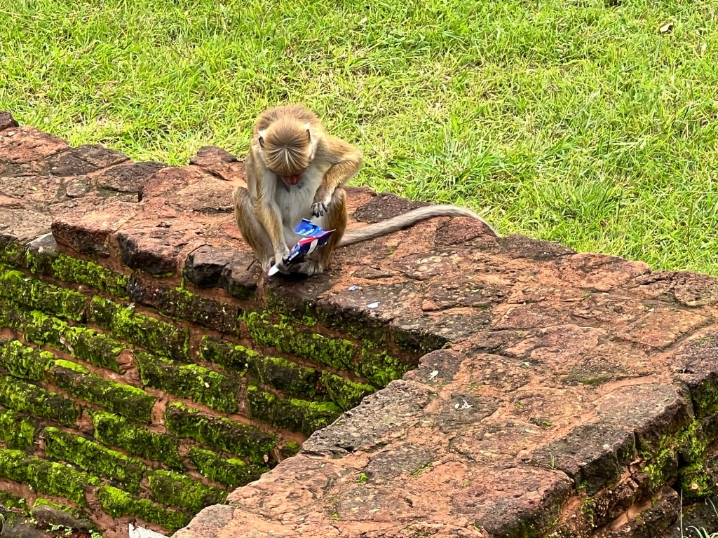 We spent a lot of time at the summit admiring the ruins of palaces and gouged out reservoirs with breathtaking 360 degree views of the lush vegetation all around and the water gardens below. We were glad to have visited the dedicated museum before we embarked on the ascent. It gave us a better appreciation of what we saw. To add to the drama, a monkey snatched a slab of chocolate from Raju’s bag.