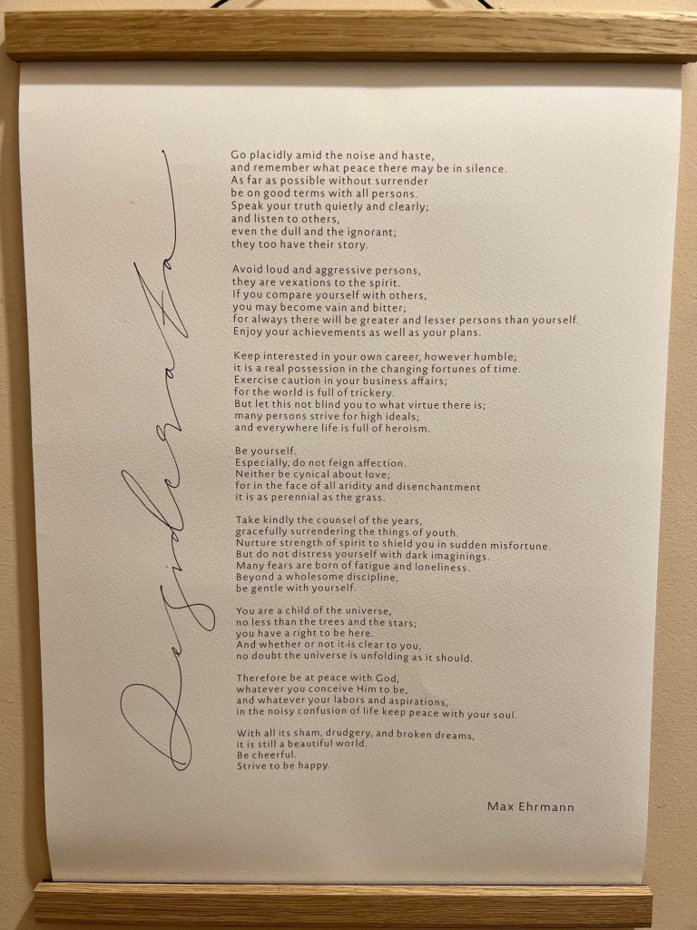 The guiding principles of my life are to be found in the prose poem ‘Desiderata’ by Max Ehrmann.